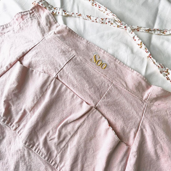 A recognition of the brand. Something that you and I can clearly feel. Yes, that's the uniform! As a handmade worker, how can you only show the brand on a piece of paper. We choose the rose pink cotton and canvas fabric to made our uniform and embroider our logo on it. At the same time, I made three pockets on the uniform which can fit all of my tools.